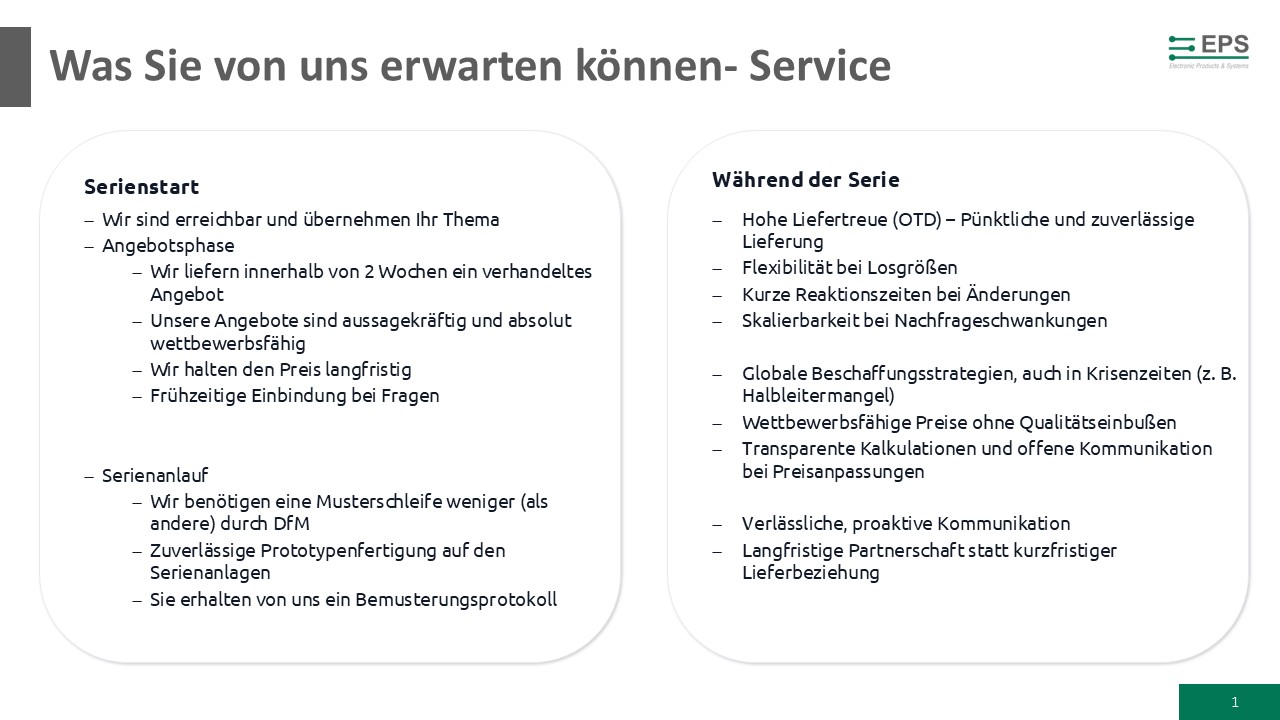 Ich hatte außerdem angekündigt, unsere Serviceorientierung als Serienfertiger weiter auszubauen – näher am Bedarf, transparenter in der Zusammenarbeit und schneller in der Umsetzung.